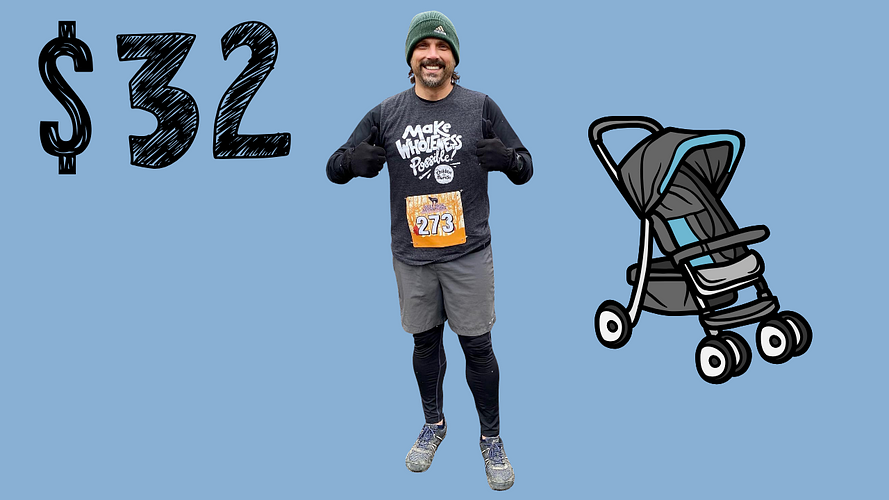 Mike must run a 5k while pushing his preschooler in a stroller.